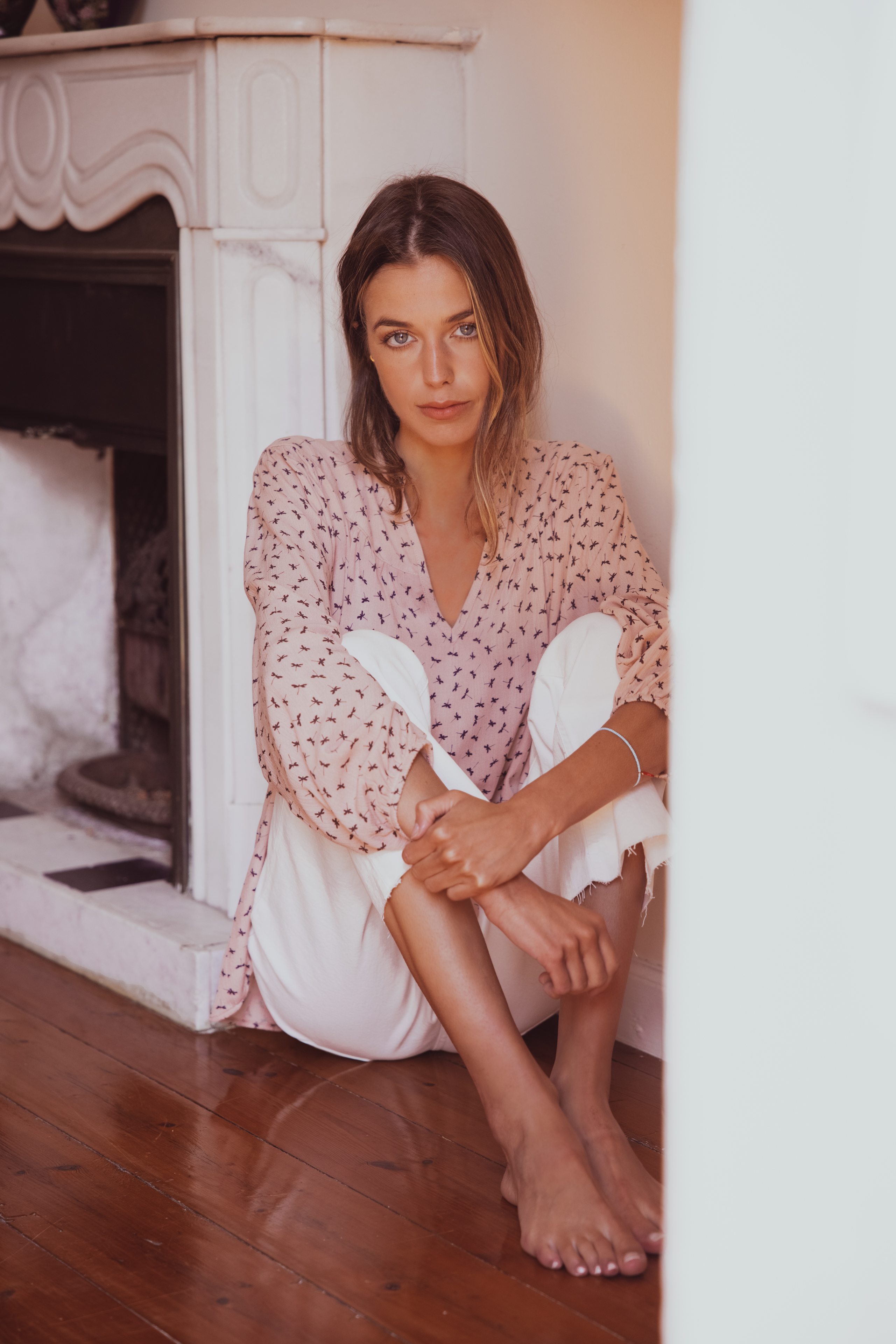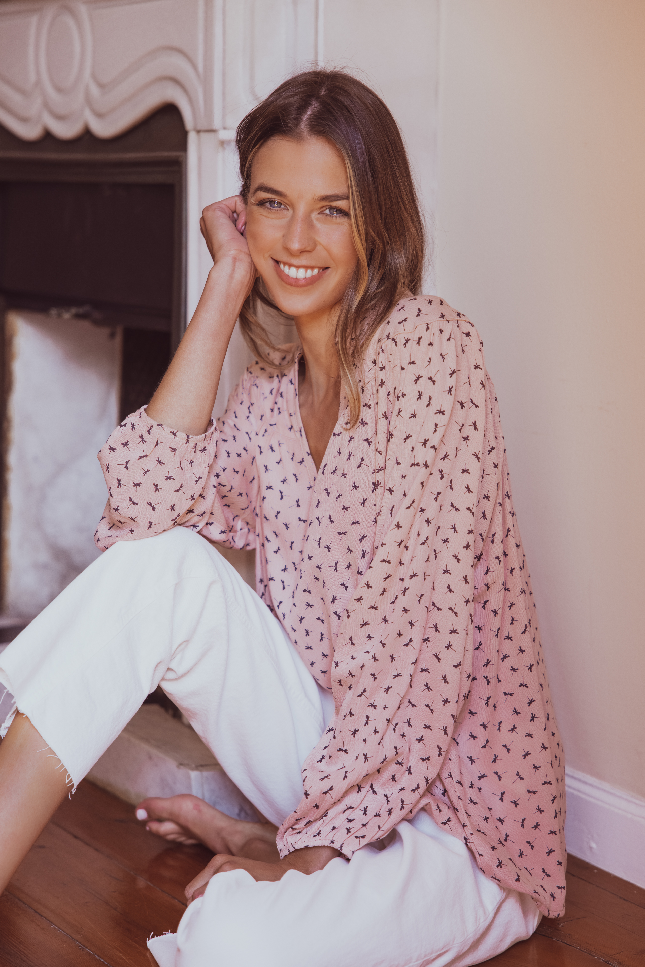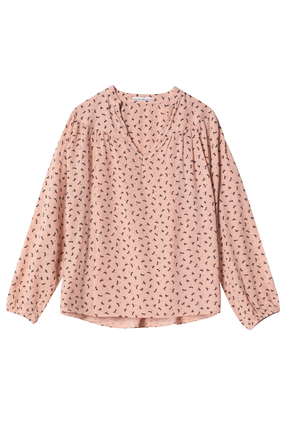 Nuestra blusa SORTE rosa vintage con motivos de libélulas en gris antracita es una de nuestras prendas en Edición Limitada que estamos convencidas os va a enamorar.